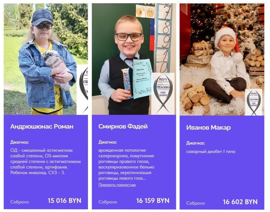 Минская область стала лидером по количеству подопечных — здесь помощь получили сразу 8 детей. Общая сумма помощи по региону — 112 211 рублей. Это целая россыпь историй, от самых маленьких до почти взрослых ребят.
