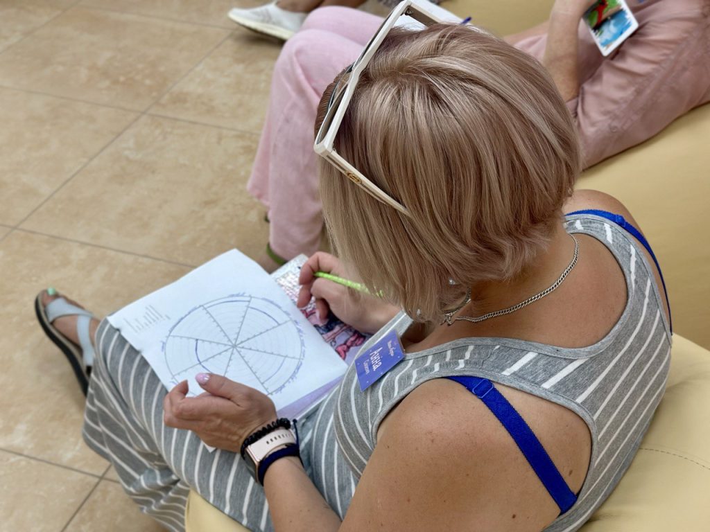 Какие существует сферы жизни и как с ними работать – это, как и многое другое, участницы узнали на первой встрече, которая прошла по методике «Колесо жизненного баланса». Встречу провела психолог и МАК-терапевт Виктория Семашко.