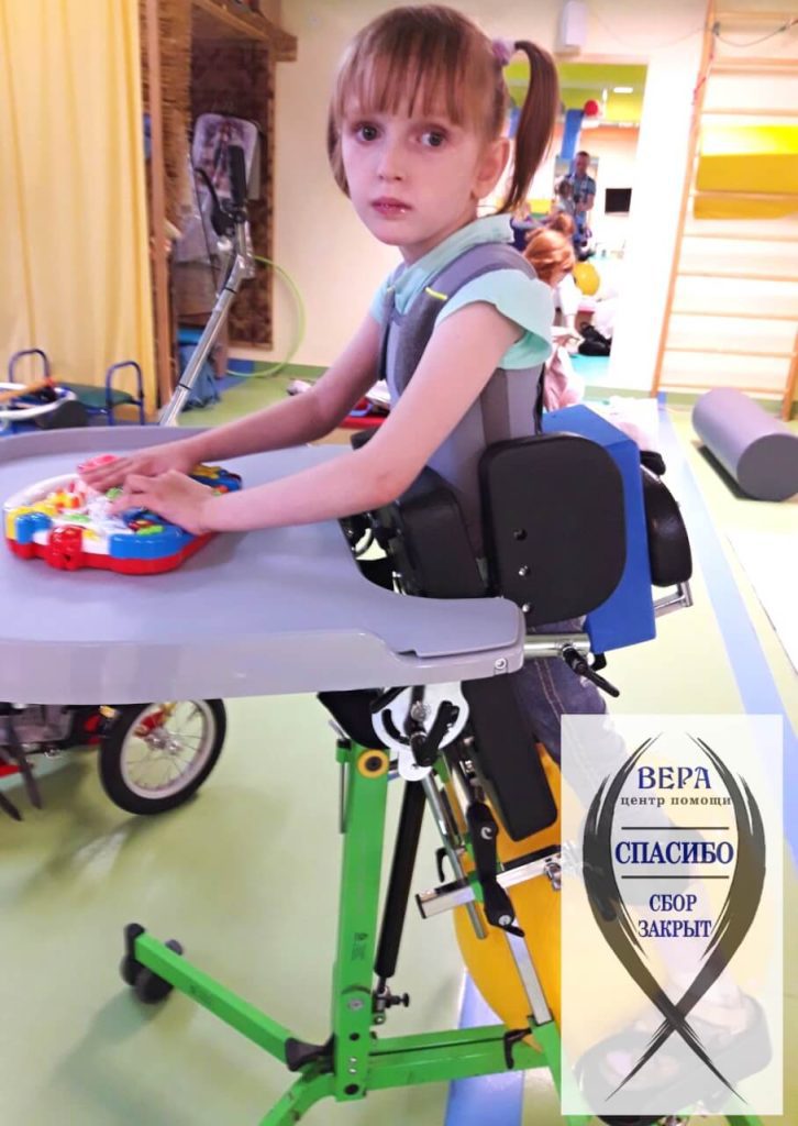 Летом этого года мы проходили лечение в клинике интенсивной терапии Олинек, в Польше. Прошли уже 6 курсов. Там для Сашки сделали артезы по ее ножке, жилетку, чтобы спинка была все время прямая. В России приобрели ходунки специальные для Сашеньки. Занятия в клинике Олинек дает восхитительные результаты. Сашка меняется все время только в лучшую сторону. Саша научилась сама кушать, стоять у поддержки хоть не долго, но уверенно. Садится и сидит сама без поддержки. Потихонечку ходит с ходунками. Тазобедренные суставы стали совсем плохие. Уже два подвывиха, плосковальгусная деформация стоп. Если будут вывихи, то без операции уже не обойтись. Сашка научилась ползать на локтях. Локти все синие, сердце сжимается когда все это видишь. Но Сашка все равно, не смотря на боль пока может на полу передвигается таким методом. Научилась Сашка одевать майку, шорты и носочки, хоть медленно, но это огромный плюс.