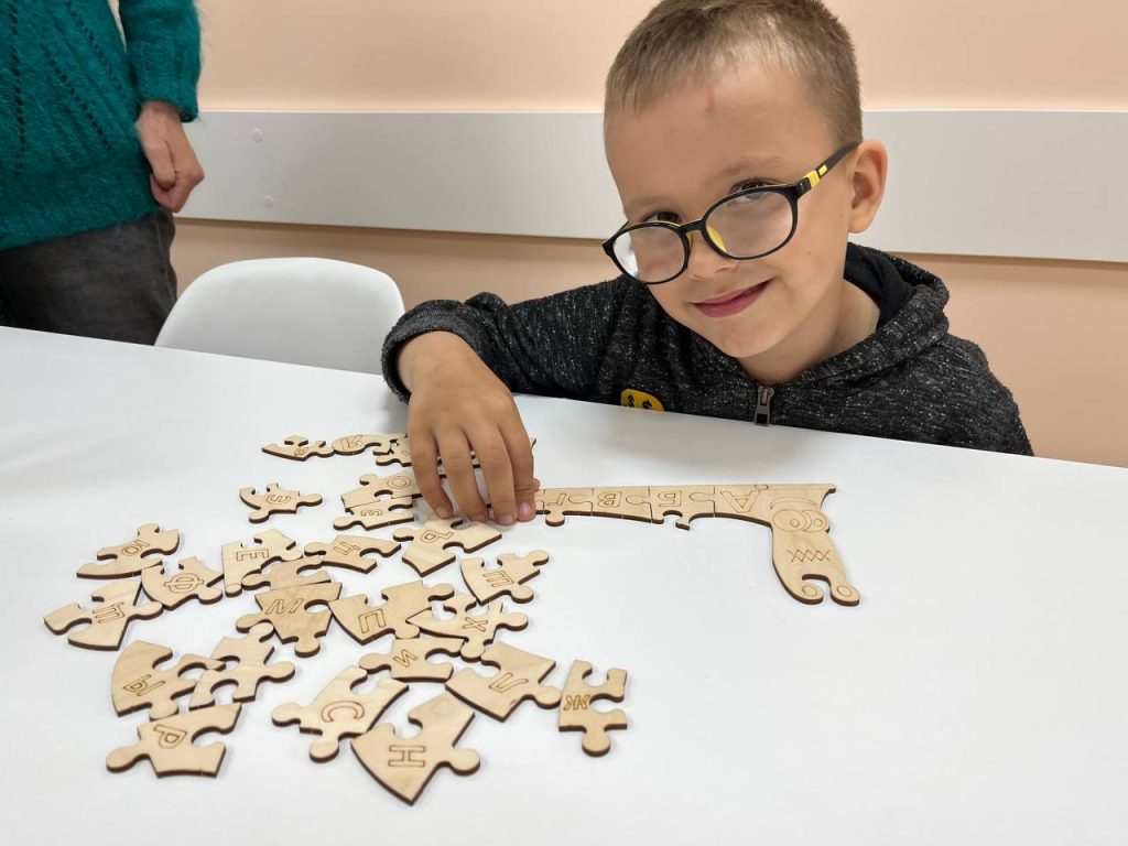 По Монтессори-терапии тоже состоялось заключительное занятие. Ребята повторяли буквы, играли с подвижным алфавитом и разбирали, какую же функцию в алфавите выполняет твёрдый и мягкий знаки. С помощью тактильных дощечек ребята готовили руку к письму, повторяя пальцем или специальной палочкой образ букв.