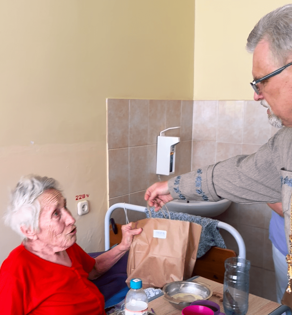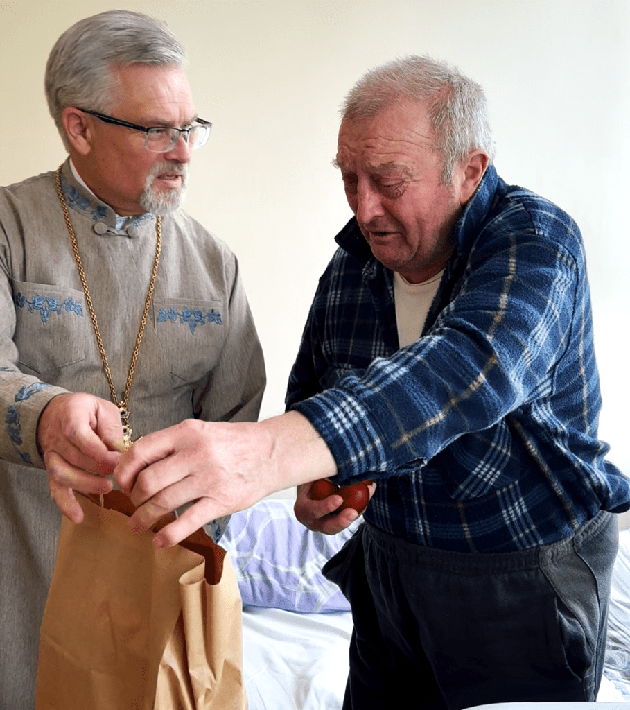 В этот раз мы приехали к больным престарелым, чтобы вручить им пасхальные угощения и подарки. А также узнать, как они себя чувствуют, познакомиться с новыми пациентами, выслушать и утешить добрым словом, которое им так необходимо.