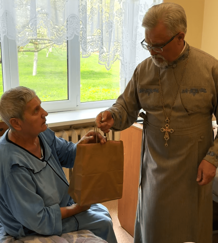 Директор Центра помощи «Вера» Антонина Мисюкевич вместе с протоиереем Александром Ивойловым уже не в первый раз навещают пожилых людей Любчанской больницы сестринского ухода, чтобы поздравить со Светлым праздником Пасхи. К сожалению, у этих людей редко бывают гости. А им ведь очень хочется с кем-то поговорить, излить душу, почувствовать себя важными и нужными. Поэтому команда Центра старается навещать их как можно чаще.