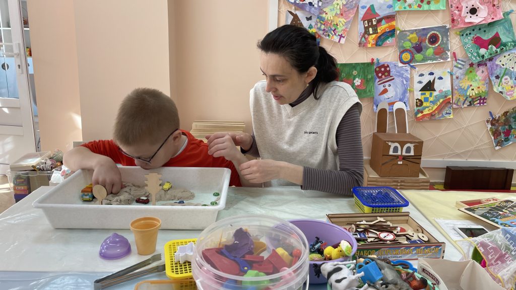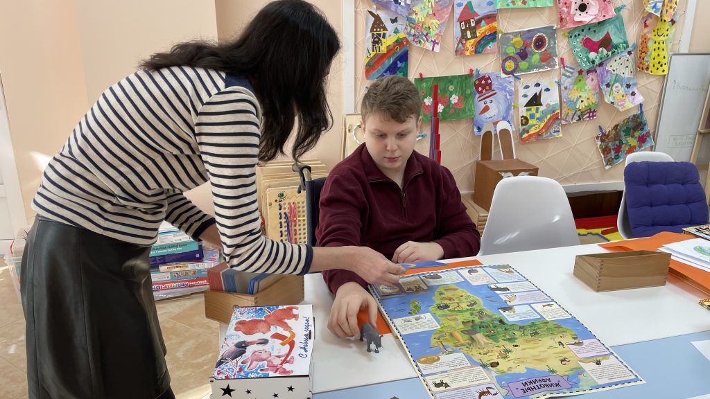 Занятия для особенных детей проходят каждый будний день в Детском инклюзивном центре «Веры». Занимаются ребята на бесплатной основе по пяти направлениям – сенсорная, театрально-игровая, песочная, арт-терапии и Монтессори-терапия.