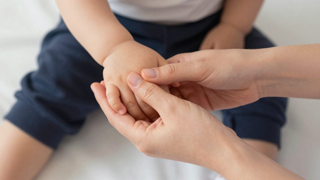 Если у ребёнка есть проблемы с вестибулярным аппаратом — он плохо удерживает равновесие, боится отрывать ноги от земли или путает направления — процесс одевания может вызывать стресс. В таких случаях: