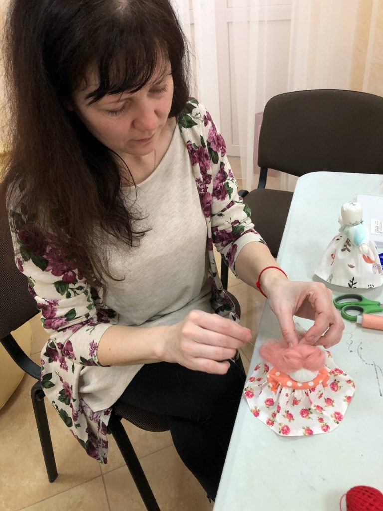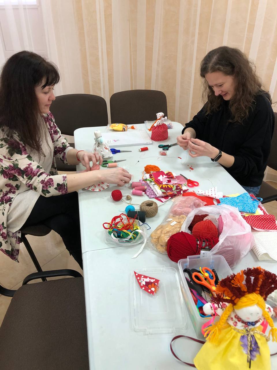 В субботу, 23 марта, в актовом зале Центра помощи «Вера» состоялась вторая встреча участников клуба народной куклы «Ляля». Женщины перешли ко второму этапу создания куклы «Домашняя масленица» – мастерили одежду, причёску и украшения.