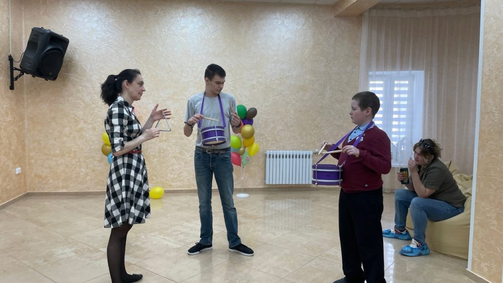 На театрально-игровой терапии во вторник ребята продолжили готовиться к постановке нового спектакля «Звериный оркестр» по мотивам сказки Дэна Браун «Звериные истории». Изучали сценарий, играли на музыкальных инструментах – барабан, бубен.