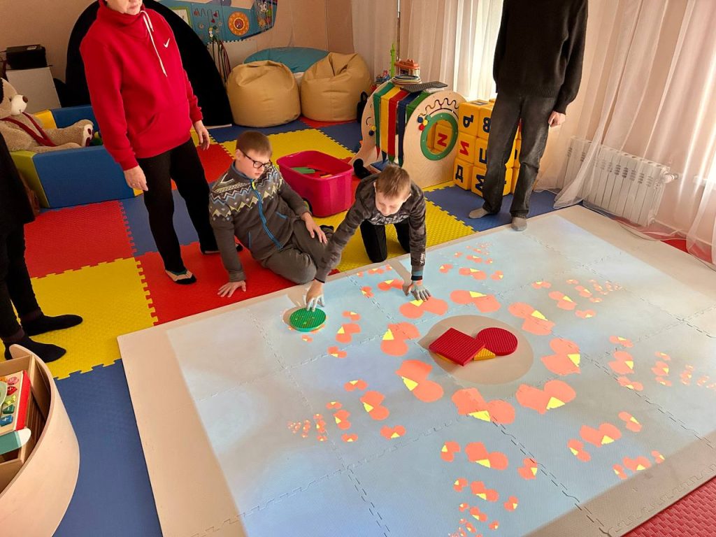 Ещё одним значимым приобретением Детского инклюзивного центра стал интерактивный пол, который используется на занятиях по сенсорной терапии.