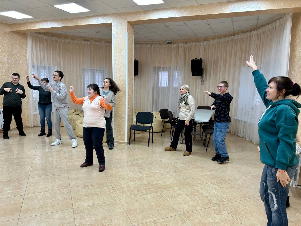 Встречи клуба проходят еженедельно по понедельникам. Это интересный досуг для молодежи, т.к. он включает в себя сразу несколько видов активности. Удобно расположившись на мягких креслах, ребята сначала смотрят кино, а затем играют, танцуют и общаются. Посещают его в основном молодые люди с инвалидностью, которые большую часть времени проводят дома. Приходить сюда можно с родителем, в клубе в новом году будет несколько свободных мест. Подробную информацию о клубе можно найти на сайте vera.by.