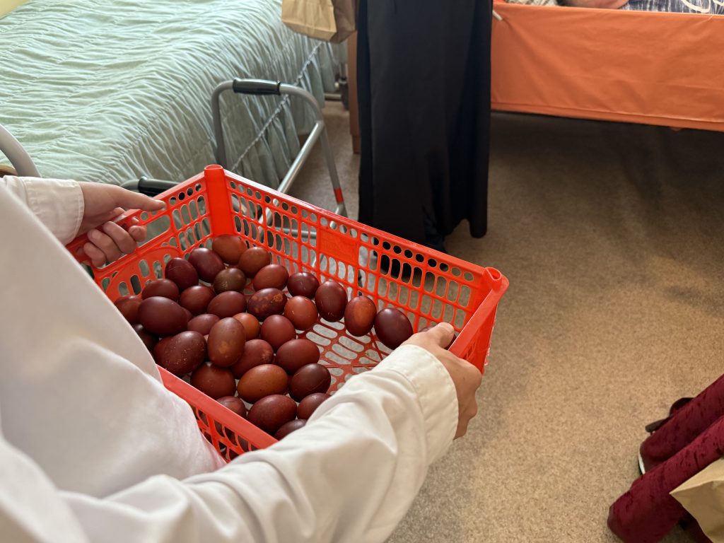 Проходя по тихим коридорам больницы, где каждый шаг отзывается мягким эхом, мы несли с собой не только корзинки с освещёнными пасхальными яйцами и маленькими подарками, но и частичку праздника — светлую, тёплую, живую. Двери палат открывались одна за другой, и в каждом помещении нас встречали глаза, наполненные удивлением, радостью, а иногда и тихой надеждой.