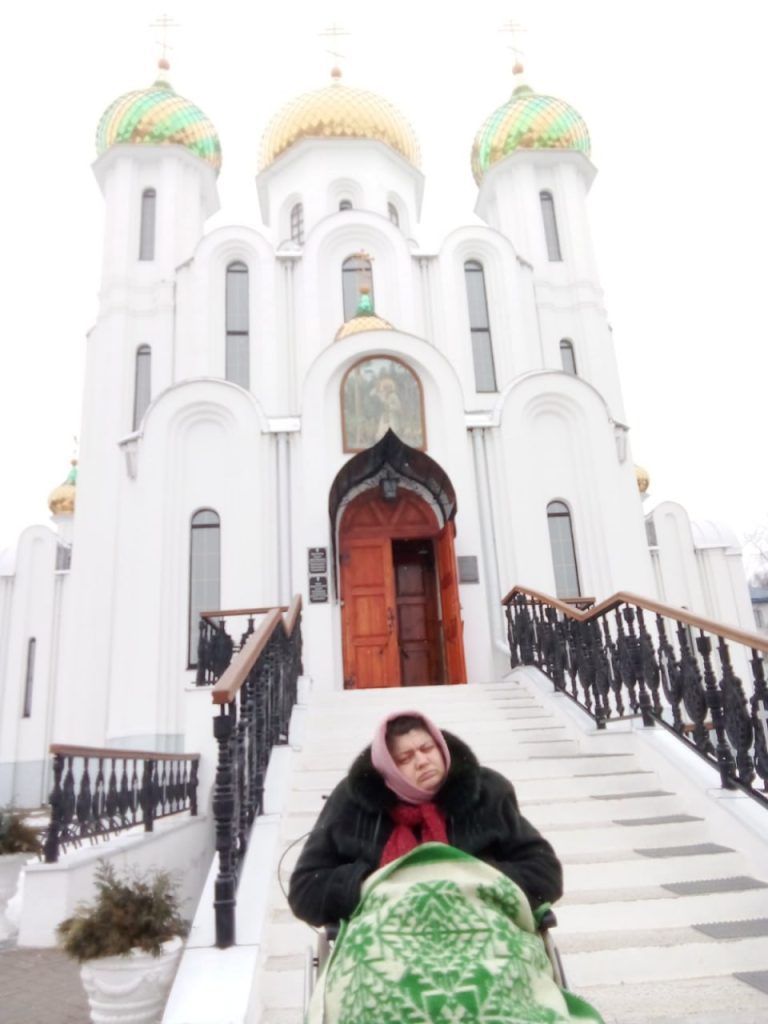 Несмотря на все нелёгкие обстоятельства, Людмила Матвеевна всё равно находит силы, чтобы отвезти дочь в храм на службу, когда это возможно. Настоящее испытание для семьи — зимняя пора. Лена весит 85 килограммов, коляска — ещё около 20. Когда дорогу заметает снег и бушуют метели, Людмиле Матвеевне приходится толкать перед собой больше 100 килограммов. А ей — 62 года, и сама она весит около 70. Каждый шаг в таких условиях даётся с невероятным трудом: возраст, физическая нагрузка, холод — всё складывается в неподъёмный груз. Но она идёт, потому что иначе нельзя.