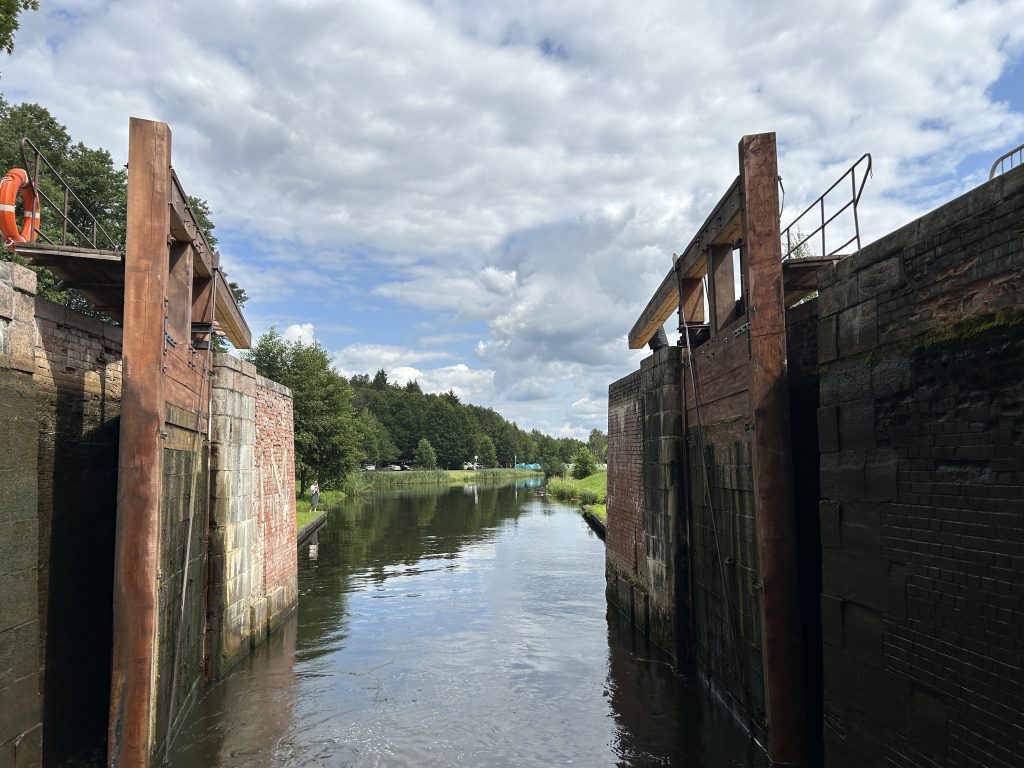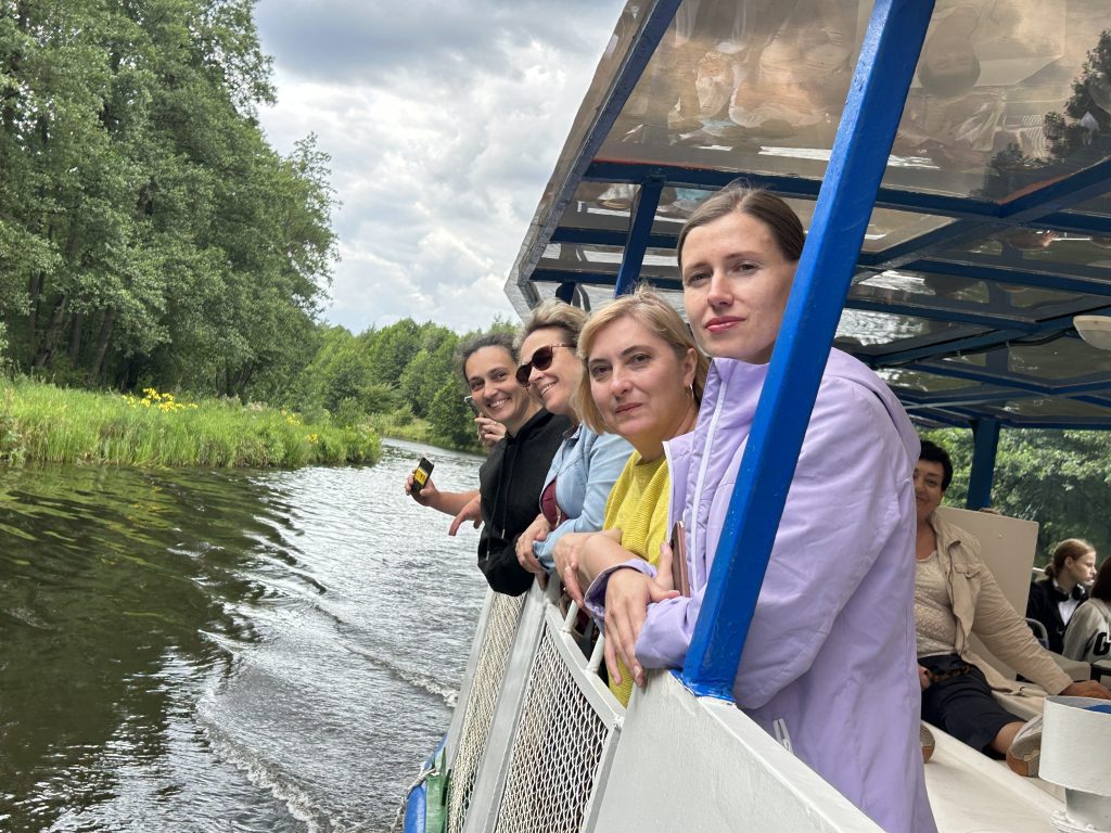 Захватывающие приключение для сотрудников Центра началось в сердце Августовского канала – на шлюзе «Домбровка». Отсюда отправляется белый теплоход, который везёт туристов на встречу с невероятными видами Гродненской пущи и красотой канала – водная гладь, утопающие в зелени берега, виды заповедного густого леса. Это очень красиво!
