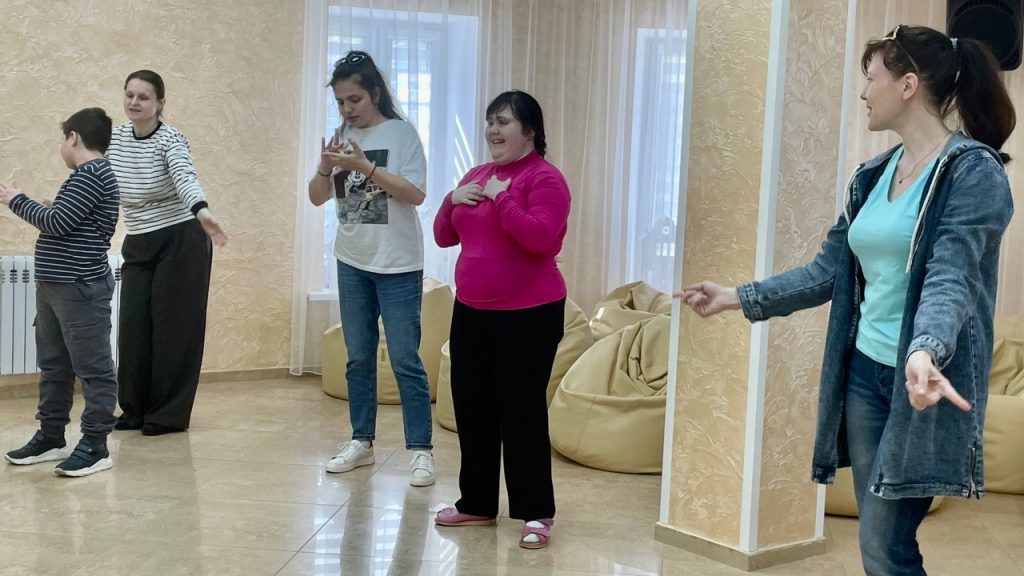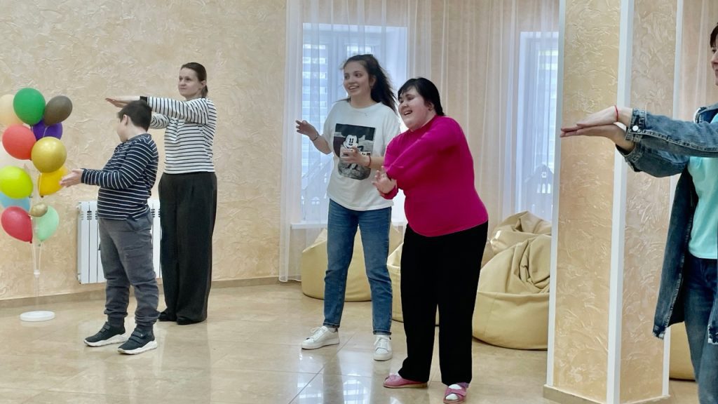 В конце встречи ребят ждали любимые танцы вместе с героями мультфильмов «Фиксики» и «Кукутики». Музыкальные движения помогают особенным детям развивать чувства ритма, память и слух.