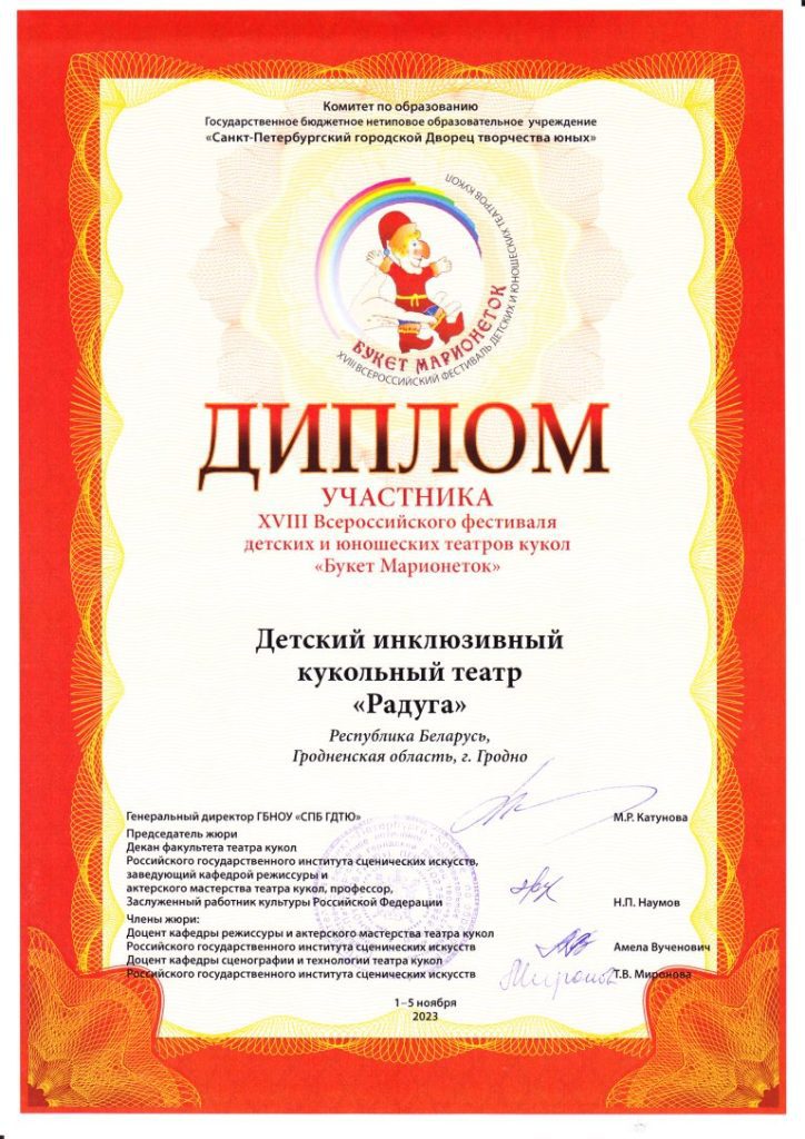 В 2023 году в концертном зале Гродненского городского центра культуры для ребят «Веры» были показаны два спектакля – «Чайка по имени Мечтатель», «Маленькая ведьмочка».