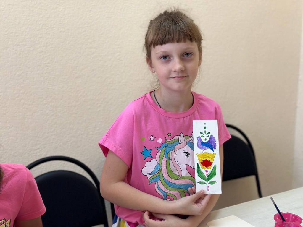 В заключительный день лагеря дети отправились в «Слонимский районный центр культуры, народного творчества и ремесел». Ребятам подробно рассказали об истории развития народных ремёсел на Слонимщине. Интересно, что экспонаты для музея собирали местные жители, передавая то, что осталось от старших поколений. Дети смогли увидеть, как наши бабушки создавали изделия из льна, как украшали свои дома, какой была одежда сельских жителей, какую изготавливали посуду. А после интересного экскурса в прошлое маленьким гостям предложили поучаствовать в мастер-классе и создать закладку для книги с узорами на историческую тематику.