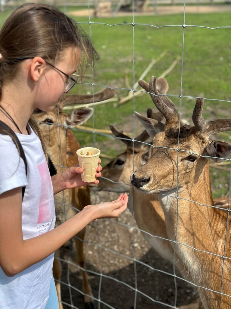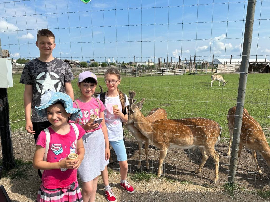 В первый день ребята отправились в мини-путешествие – в Брестскую область в уникальный парк животных «Диприз». Это крупнейший в Беларуси зооландшафтный парк с обширной экспозицией животных и птиц. Он представляет собой две зоны – лесная и парковая, где животные содержатся, и в вольерах, и в свободном проживании без ограждений и могут контактировать с посетителями. Животных можно кормить и гладить, а ещё делать забавные фотографии с козами, страусами или даже оленями. Для детей это стало настоящим открытием и огромным удовольствием. Среди жителей парка десятки видов животных, а также птиц. Парк очень большой, с множеством игровых и зон отдыха. Деткам здесь очень понравилось.
