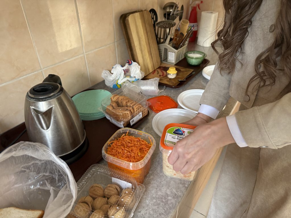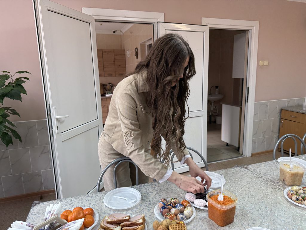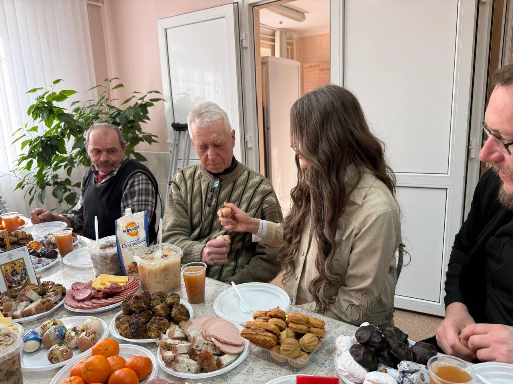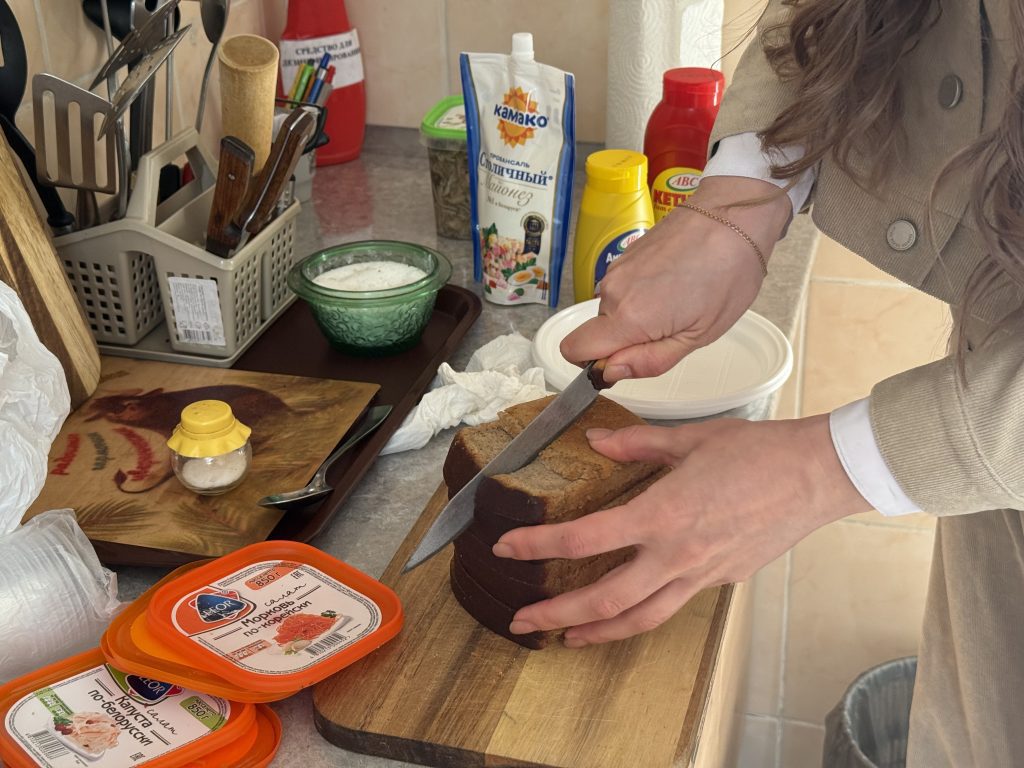 Чтобы завтрак получился тёплым и спокойным, мы приехали заранее. Необходимо было успеть всё подготовить. На кухне разложили купленные продукты, аккуратно выставили хлеб, яйца, сок. Перепроверили, хватит ли посуды и салфеток, чтобы никто не чувствовал себя лишним. Всё делалось не спеша, с мыслью: важно не только накормить, а создать ощущение настоящего пасхального стола — там, где его у многих давно не было дома. Когда всё было готово, оставалось только одно: пригласить людей к столу и впустить сюда, в эти стены, немного света, радости и праздника.