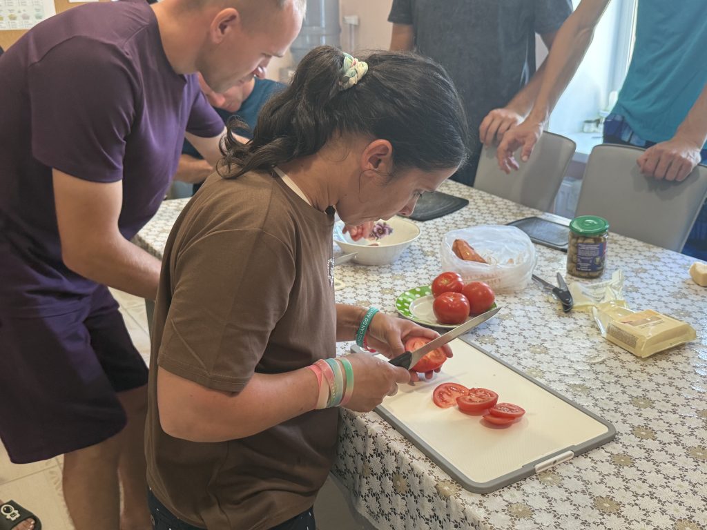 Жизнерадостность и трудолюбие этих замечательных людей вдохновляет. Они постоянно учатся, трудятся, готовят выпечку для местного кафе «Время кофе», открытого при пансионате, изготавливают на продажу сувениры и поделки. А заработанные деньги распределяют на нужды своей маленькой семьи.
