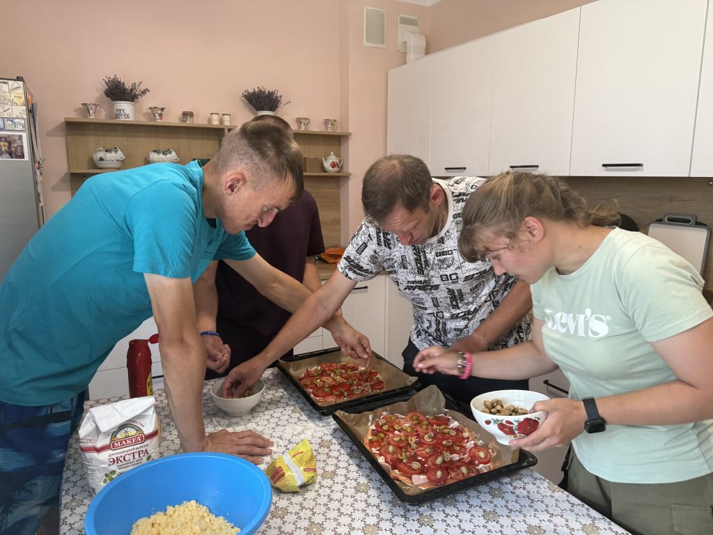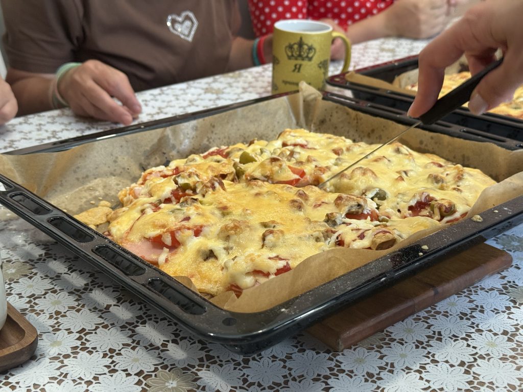 Команда Центра помощи «Вера» приехала познакомиться с ребятами поближе и провести с ними время за готовкой и беседой по душам. Нарезали ингредиенты, раскатывали тесто, болтали и смеялись – работа шла быстро и слаженно. А результат порадовал каждого.