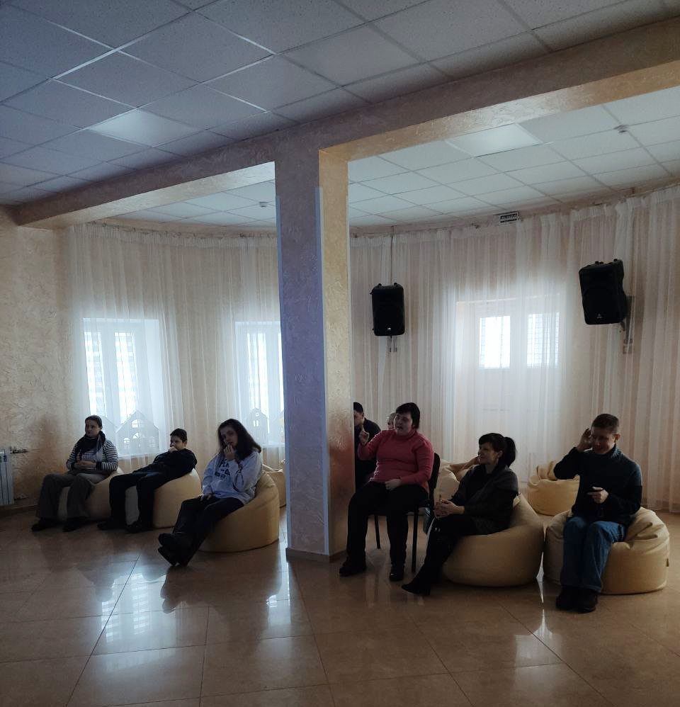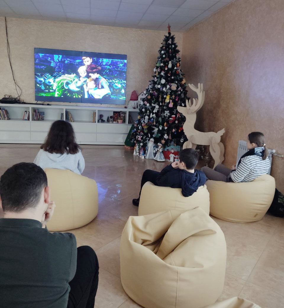 Декабрьские киновстречи проходят в уютном актовом зале у ёлочки. Ребята собираются по понедельникам, смотрят вместе мультфильмы и фильмы, проводят время активно – танцуют, двигаются, общаются. Такая форма досуга позволяет молодым людям найти себе друзей, чаще выходить из дома, общаться, развиваться в комфортной для себя атмосфере.