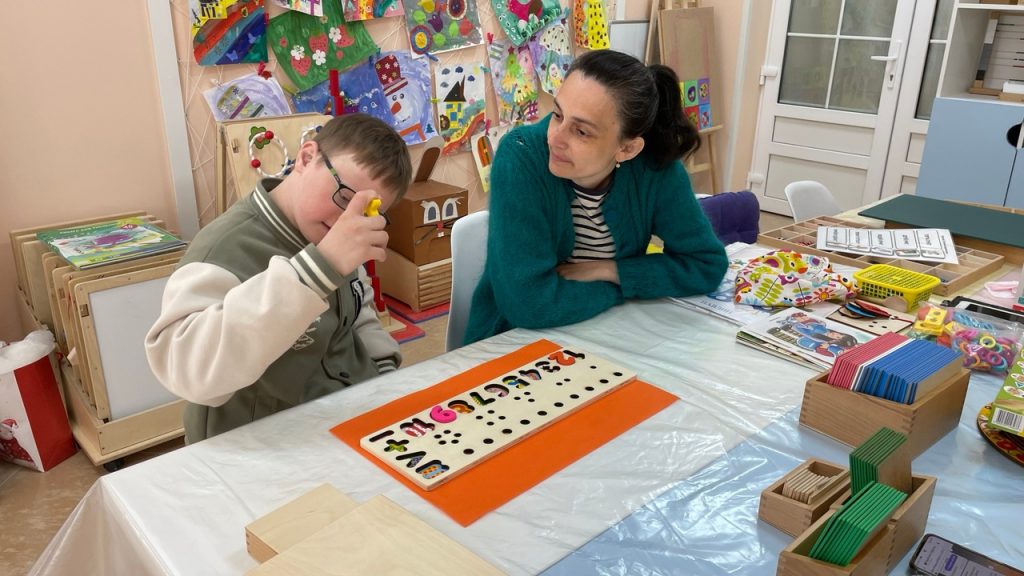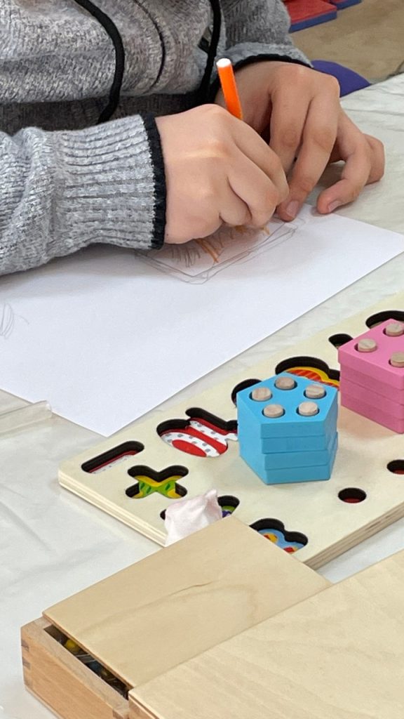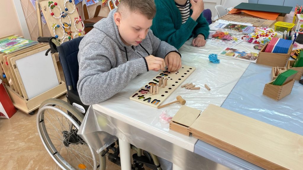 В четверг на Монтессори-терапии ребята изучали цифры, счёт и геометрические фигуры. Играли с многофункциональным сортером, пособием «Тактильные и шероховатые цифры», геометрическими рамками-вкладышами. На занятиях по Монтессори-терапии ребята занимаются с разными зонами – упражнения навыков практической жизни, сенсорное воспитание, развитие речи, развитие математических представлений и др. В каждой зоне развития материал располагается «от простого к сложному», в такой же последовательности ребенок знакомится с материалом.