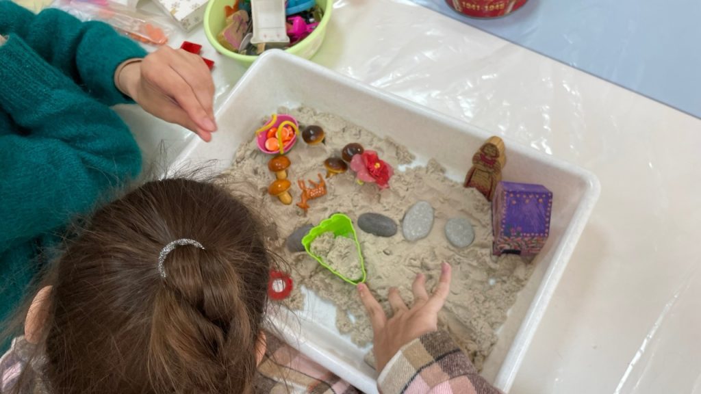 В среду на занятиях по песочной терапии дети традиционно перенеслись в сказочную атмосферу. Тема этой недели – сказка «Красная Шапочка». Играли ребята с кварцевым песком, фигурками животных, растений, камушками. По сюжету Красная Шапочка несла корзинку с пирожками своей бабушке, но на пути ей встречались разные лесные персонажи. Ребята помогали героям, лепили им пирожки и булочки, считали вместе с ними и писали. За это они помогали Красной Шапочке добраться в гости к бабушке. Игры с песком способствуют развитию индивидуальных способностей у детей. Играя с песком, создавая разные фигуры из песка, дети могут выражать свои чувства и переживания. Песок – универсальный материал, с помощью которого ребята могут осуществить свою фантазию, вылепить замок, создать необычную фигуру.
