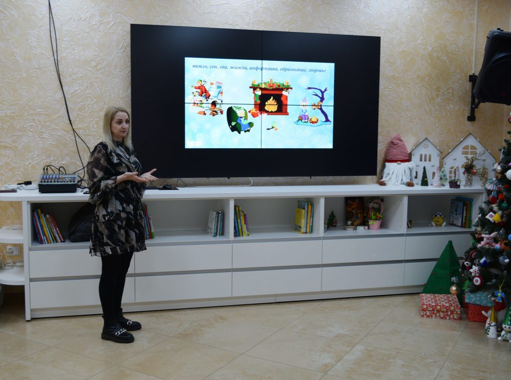 Светлана Михальская поздравила ребят с наступающими новогодними праздниками и подарила им подарки. Дети поделились своим творчеством – рассказывали стихотворения и пели песни.