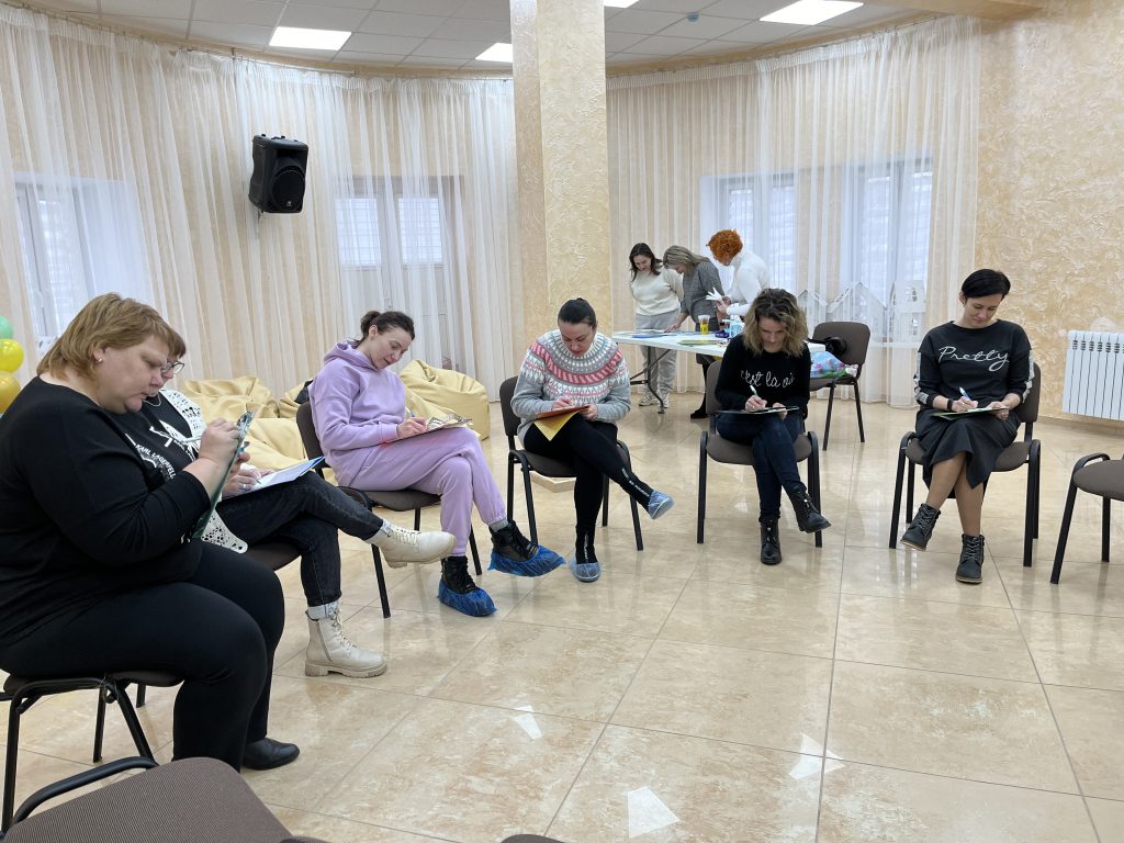 Анастасия Панкина на первой встрече предложила женщинам и интересную психологическую практику – аромарисование. Участницы вдыхали запах ароматического масла, а затем рисовали свои эмоции и ассоциации, навеянные этим ароматом. Важная часть встречи – рефлексия, когда участницы делятся мыслями, рассказывают о своих переживаниях.