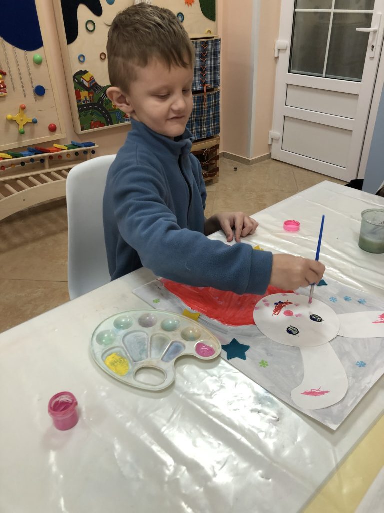 Дети осваивали смешанные техники — соединяли рисование красками с лепкой и аппликацией. Для кого-то это было первое знакомство с кистью, для других — возможность проявить фантазию в декорировании. Мы использовали необычные материалы: рисовали воздушными шариками, создавали зимние узоры с помощью коктейльных трубочек, делали фактурные поверхности полиэтиленовой пленкой. Такие эксперименты помогали детям, которые обычно боятся ошибиться на чистом листе, — здесь не было правильного или неправильного, был только творческий процесс.