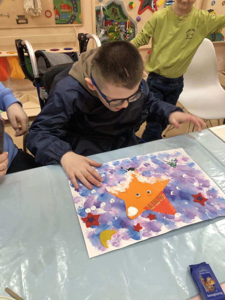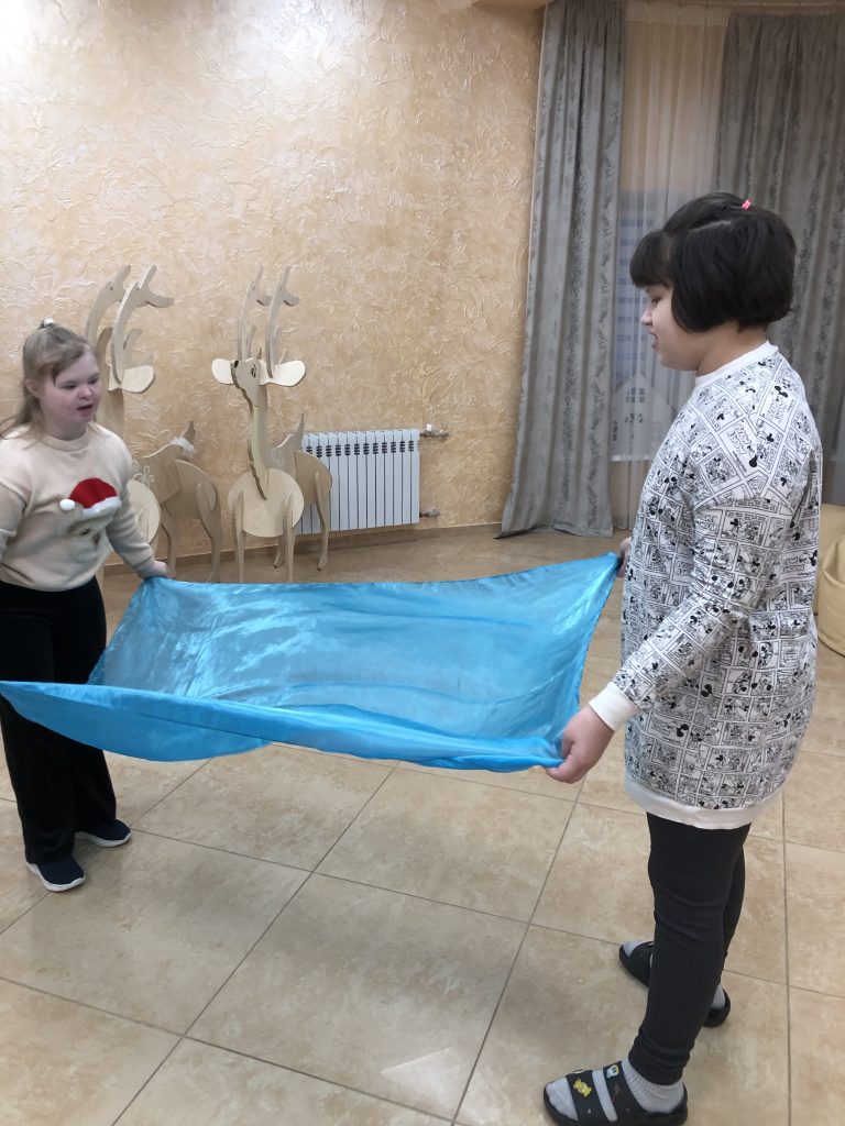 В январе мы много работали с тактильными ощущениями. Дети ходили босиком по тактильной дорожке, где каждый участок имеет разную поверхность: мягкую, ребристую, колючую, шершавую. Для кого-то это было веселое приключение, для кого-то — серьезное испытание, преодолевая которое, ребенок делал шаг к тому, чтобы принимать разные ощущения.