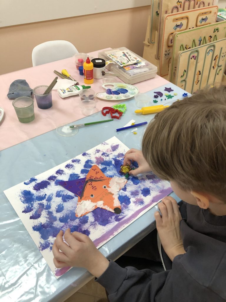 Январь в творческой мастерской был посвящен зиме — тому, что дети видели за окном. Но через искусство они учились видеть и чувствовать гораздо больше. Четыре работы создали наши ребята за месяц: «Мороженое», «Зайка», «Собака-такса» и «Лисёнок-дружок». Каждая картина стала не просто рисунком, а целой историей, рассказанной красками, пластилином, бумагой и блестками.